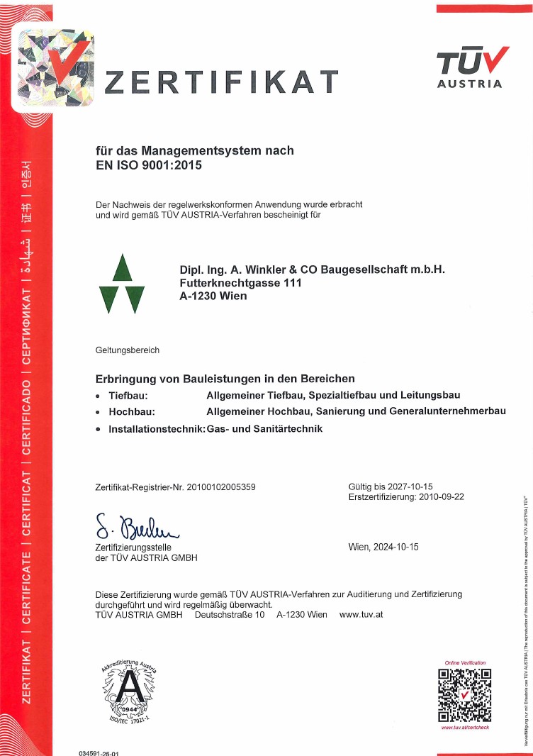 Unser betriebsinternes Managementsystem garantiert unseren Auftraggebern Leistungen auf hohem Niveau unter Berücksichtigung der geltenden Qualitäts,- Sicherheits- und Umweltaspekte.